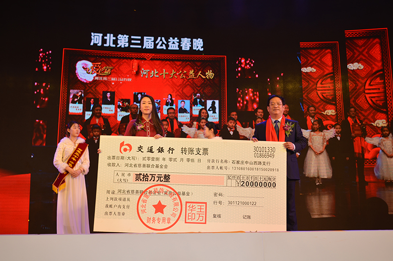 (王万华董事长与河北省慈善联合基金会宋静华秘书长)